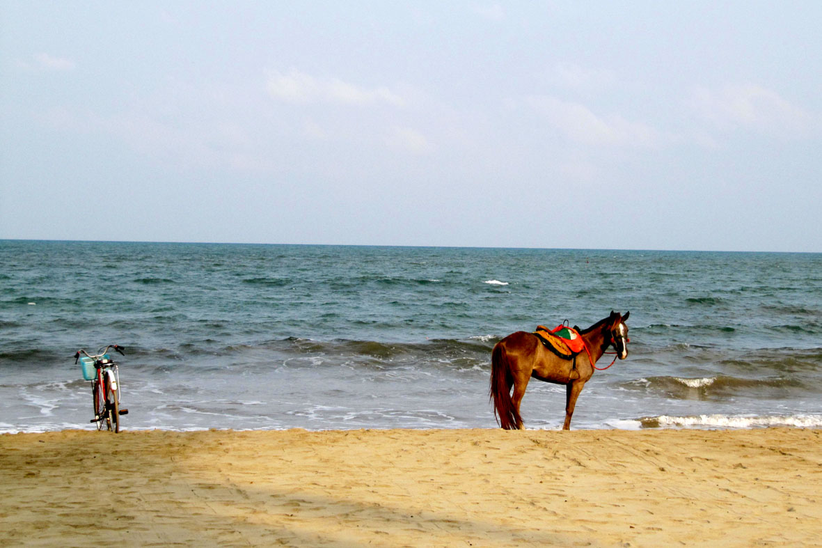 Chaungtha Beach besteht aus einem sehr langen und breiten, goldenen Strand mit einer noch goldeneren Mini-Pagode auf einem Felsen direkt am Wasser. Lustigerweise treffen wir in unserem Hostel ausgerechnet einen Clubbesitzer aus Berlin (unserer Heimatstadt), der jedes Jahr ein paar Wochen in Asien chillt und sich in Bangkok neue Anzüge nähen lässt. Ansonsten sehen wir weit und breit nur urlaubende Burmesen. Die Kinder fahren fröhlich auf Leihfahrrädern den Strand auf und ab, lassen sich eine Runde auf einem der Ponies führen, die von ein paar Jungs jeden Morgen zum Strand gebracht werden, und ganze Familien lassen sich auf Autoreifen, die bergeweise am Strand zum Verleih angeboten werden, auf den Wellen schaukeln. Dabei tragen sie T-Shirts und traditionelle Wickelröcke, die nass zwar sehr viel Silhouette zeigen, aber keine nackte Haut.