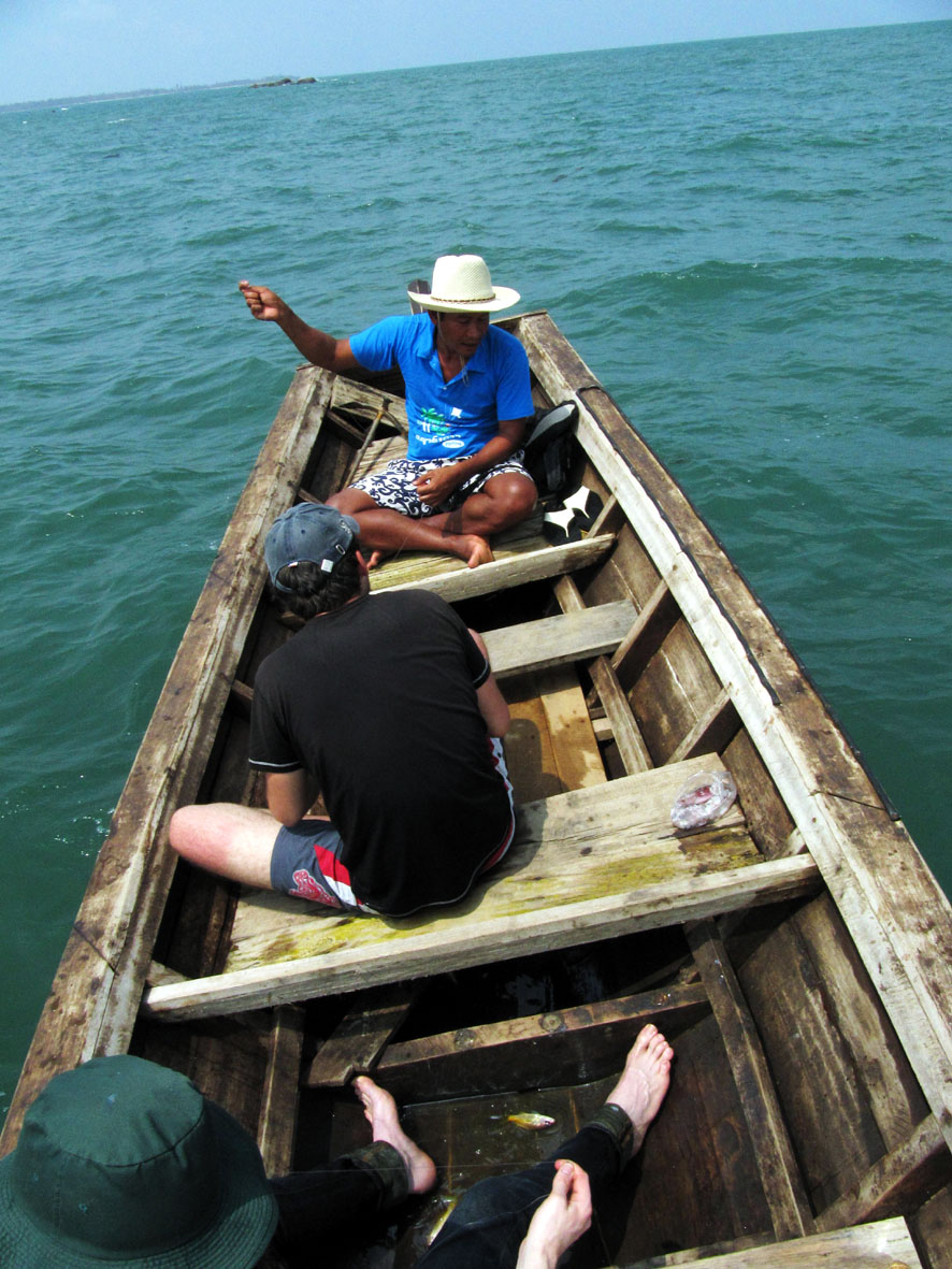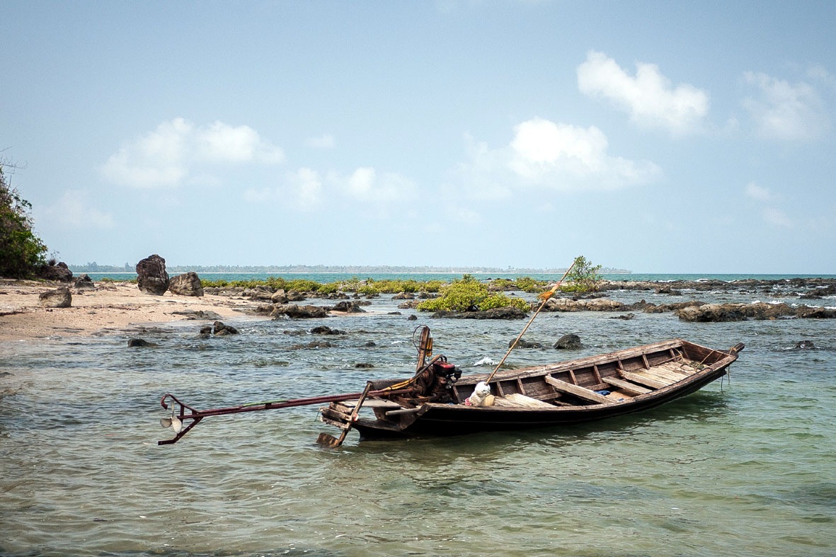Einen halben Tag lang tuckern wir auf einem schmalen Holzkahn, der mehr Einbaum als Boot ist, durch die Bucht. Zum Glück starten wir früh morgens, denn das Ding hat natürlich keine Überdachung. Mit an Bord ist noch Oleg, ein netter Ukrainer, außerdem Ko Ye Naing, der für uns übersetzt, denn Kyaw Swa, der Fischer, spricht kein Wort Englisch. Das Schnorcheln ist leider eine Enttäuschung: Die Sicht beträgt überraschenderweise nur ein paar Meter, die Unterwasserlandschaft ist eher öde und auch Fische sehe ich kaum. Dafür werden wir auf der kleinen Insel, wo wir einen kurzen Stopp einlegen, von hunderten winzigen Einsiedlerkrebse begrüßt, die über den Strand wuseln.