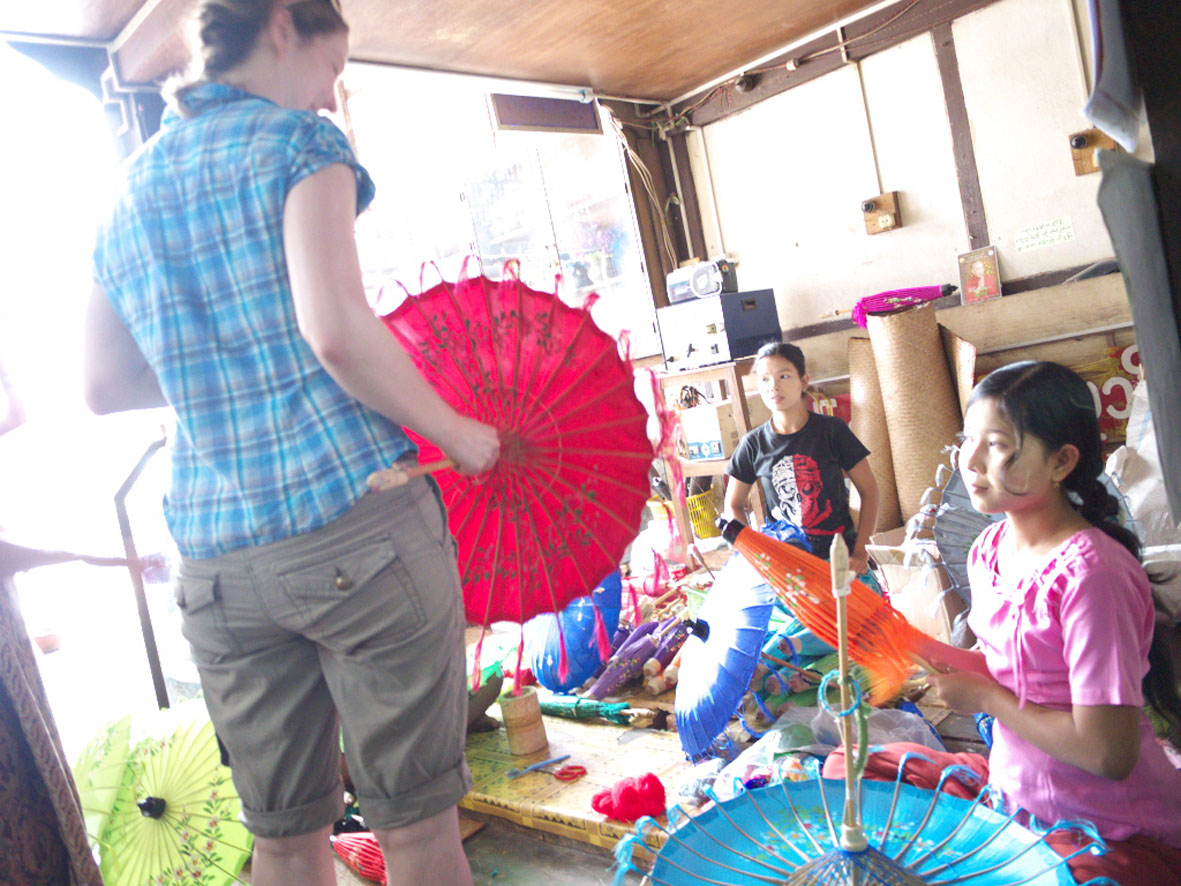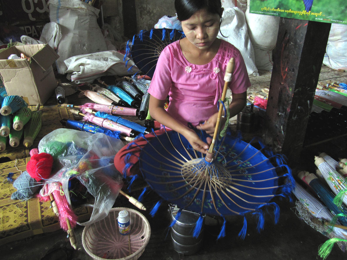 Pathein: Auf dem Weg von Yangon nach Chaungtha Beach (oder zurück) lohnt sich ein Abstecher nach Pathein. Die Stadt liegt im Flussdelta und ist bekannt für die wunderschön bemalten Sonnenschirme. Man kann in den kleinen Läden zuschauen, wie sie von Hand gefertigt werden. Außerdem gibt es dort eine prächtige Pagode und einen großen Markt. Von hier verkehren auch Schiffe nach Yangon.