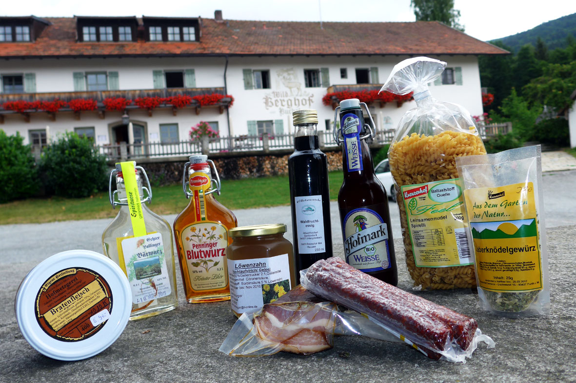 Als ich später durch den Hofladen stöbere, frage ich mich, was das wohl künftig für das Handwerk der Region bedeutet. Rund 100 Produkte werden hier verkauft, erzählt mir Josef Schmaus, der den Laden führt, und bis auf wenige Ausnahmen werden sie alle von Betrieben hergestellt, die nicht weiter als 30 Kilometer entfernt liegen. In den Regalen stehen Marmeladen, Essige, Bier und Brände, Kräutertees, Gewürze, Senf, Nudeln, Waffeln, Wurst und Schinken, Geschnitztes, Gefilztes und Genähtes, Geweihe und Trachtenmode. Ich bin beeindruckt: Wenn man bedenkt, wie dünn die Gegend besiedelt ist, muss die Liebe zum guten Essen hier besonders groß sein.