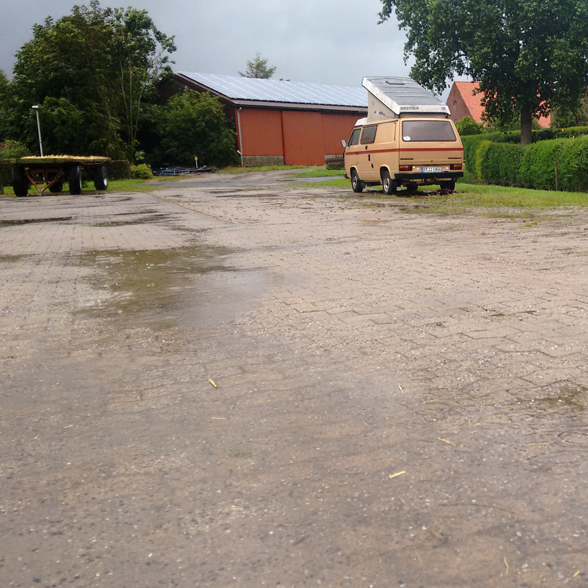 Am nächsten Tag fahren wir gerade durch eine 30er-Zone (zum Glück nicht Landstraße oder gar Autobahn), als unser Bus ein dumpfes, reißendes Geräusch von sich gibt. Die Antriebswelle ist gerissen, diagnostiziert der Co-Jäger (womit er Recht behält). Leider sind wir über 500 Kilometer von unseren Kiezschraubern entfernt, die den Bulli und seine Konstitution ziemlich gut kennen. Und so bleibt uns nichts anderes übrig, als unser rollendes Zuhause einer nahe gelegenen Werkstatt anzuvertrauen und mit dem Zug nach Hause zu fahren.