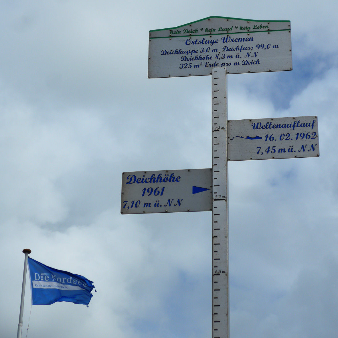 Wer in Deutschland mal so richtig Kontrastprogramm erleben will, muss einfach aus dem Bayrischen Wald hoch an die Küste fahren. Eben rollte unser Bulli noch durch grüne Täler und wir campten neben dichten Nadelwäldern, jetzt reichen die Wiesen plötzlich bis zum Horizont und die Kühe darauf sind auch nicht mehr hellbraun, sondern schwarz-bunt gefleckt. Überhaupt, der Horizont: Als 360-Grad-Panorama ist er allgegenwärtig, wird höchstens durch eine Baumreihe oder ein backsteinrotes Hutzelhaus unterbrochen, und der Himmel darüber ist auf einmal weit, so weit. In diesen Tagen – wir haben Ende Juli! – gleicht er leider meist der grau-weißen Suppe in einem Waschzuber, die dicht über unseren Köpfen schwimmt. Es stürmt und regnet, als wären wir vom Hochsommer in den Herbst gefahren. Aber die steife Brise reißt den Himmel auch immer wieder auf und dann können wir den Wolken dabei zusehen, wie sie Line Dancern gleich über eine gigantische, spektakulär ausgeleuchtete Bühne tanzen.