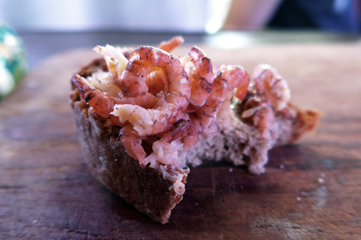Oft saßen wir um den Küchentisch meiner Großeltern, ein riesiger Berg Krabben auf Zeitungspapier in der Mitte, dessen rosarotes Fleisch wir mit geschickten Fingern und tausendfach geübten Dreh-Zieh-Bewegungen von ihren hauchdünnen Panzern befreiten. Meist konnte ich nicht widerstehen und steckte mir den winzigen Happen direkt in den Mund – die Dinger waren noch kleiner als meine Kinderfinger. Noch besser schmeckt der Granat allerdings, wenn man ihn auf eine Scheibe gebuttertes Graubrot häuft und dann in diesen saftigen Berg hinein beißt.