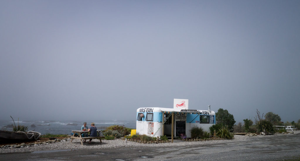 Ziemlich genau drei Jahre ist es her, dass wir bei Nins Bin Crayfish mit heißer Knoblauchbutter gegessen haben und der Gedanke daran macht uns gerade sehr traurig. Denn das kultige kleine Büdchen, dass seit 1977 an der Ostküste von Neuseelands Südinsel, nahe Kaikoura steht, gibt es nicht mehr. Das Erdbeben der Stärke 7,5, welches in der Nacht vom 12. auf den 13. November Neuseeland erschütterte, hat auch Teile des Küstenhighway (SHW1) unpassierbar gemacht. Kaikoura und auch die Überreste von Nins Bin waren einige Tage lang von der Außenwelt abgeschnitten. Touristen, die die Haupteinnahmequelle darstellen, können den für Whale Watching berühmten Ort weiterhin nicht erreichen, die Aufräumarbeiten und Instandsetzung werden voraussichtlich noch Monate dauern. Das bedeutet: Die Familien in der Region müssen nicht nur mit dem Schock und den Schäden, die das Erdbeben verursacht hat, zurecht kommen, sie haben auch auf unbestimmte Zeit kein Einkommen.