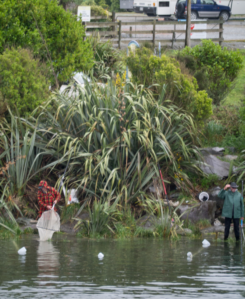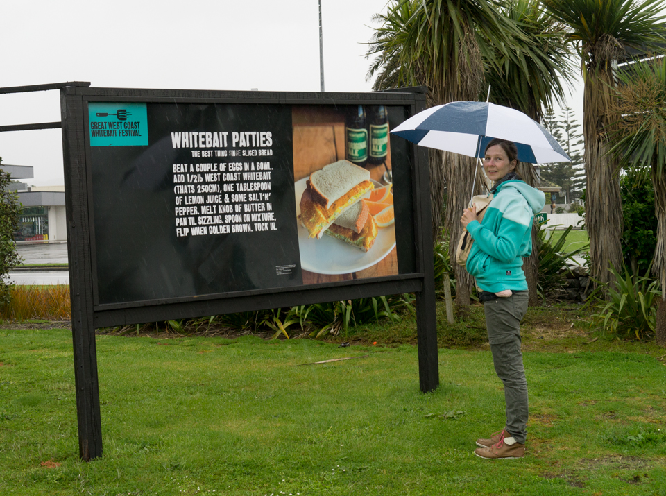 Es regnet in Strömen in Hokitika und der Wetterbericht für die nächsten Tage verspricht Nieselregen, Schauer, starken Regen und Gewitter. Die Investition in ein paar Gummistiefel hat sich gelohnt (ganz abgesehen davon, dass die Dinger die Laune heben – ich ertappe mich dabei, grinsend durch Pfützen zu stapfen). Auch die Einheimischen lassen sich vom miesen Wetter nicht davon abhalten, stundenlang mit ihren großen Keschern am Fluss herumzustehen. Schließlich ist Whitebait-Saison und die geht nur zweieinhalb Monate. Da will man schließlich keinen Tag verpassen.
