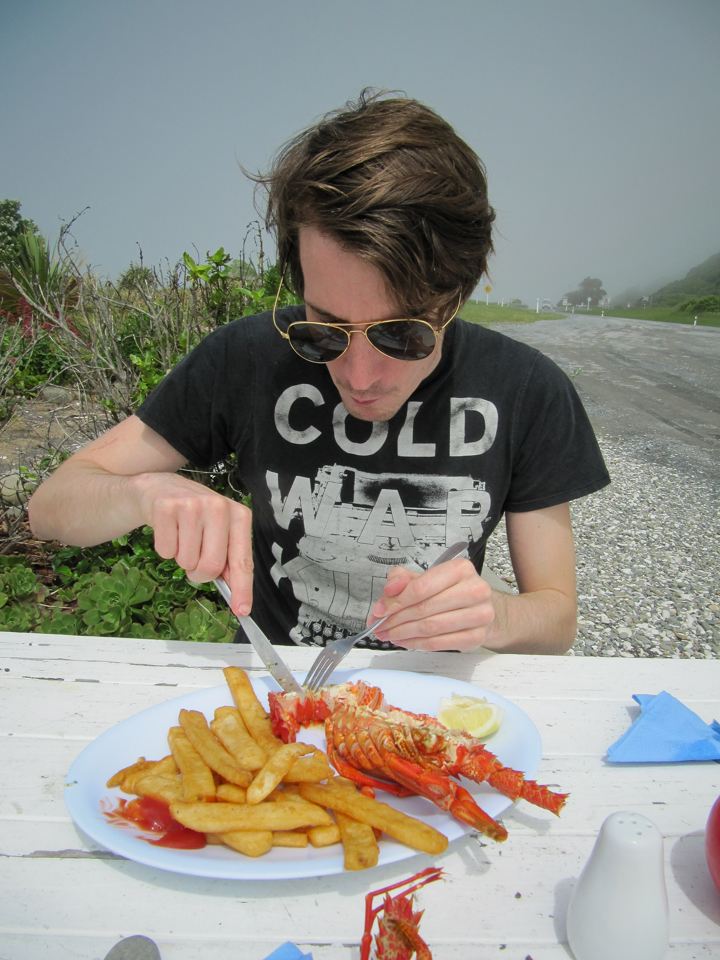 Wir bestellen ein mittelgroßes Exemplar ($60) mit Knoblauchbutter ($8 extra) und einer großen Portion Pommes ($10), denn die sehen so aus, als wären sie von Hand aus großen Kartoffeln geschnitzt worden. Zehn Minuten später bringt uns Rick zwei Teller mit je einer Crayfish-Hälfte und einem Berg Fritten an unseren Picknicktisch, der ein paar Meter weiter zwischen Flachsbüschen am Strand steht. Und warnt uns davor, das Essen auch nur ein paar Sekunden unbeaufsichtigt zu lassen: „Die Möwen hauen sonst damit ab.“ Prompt nähern sich die ersten mit gierigem Blick. Aber sie haben keine Chance, denn wir futtern unsere köstlichen, saftig-buttrigen Schalentiere schneller leer als uns lieb ist. Auch die Fritten halten, was sie versprachen: Sie haben Biss und sind innen schön mehlig.