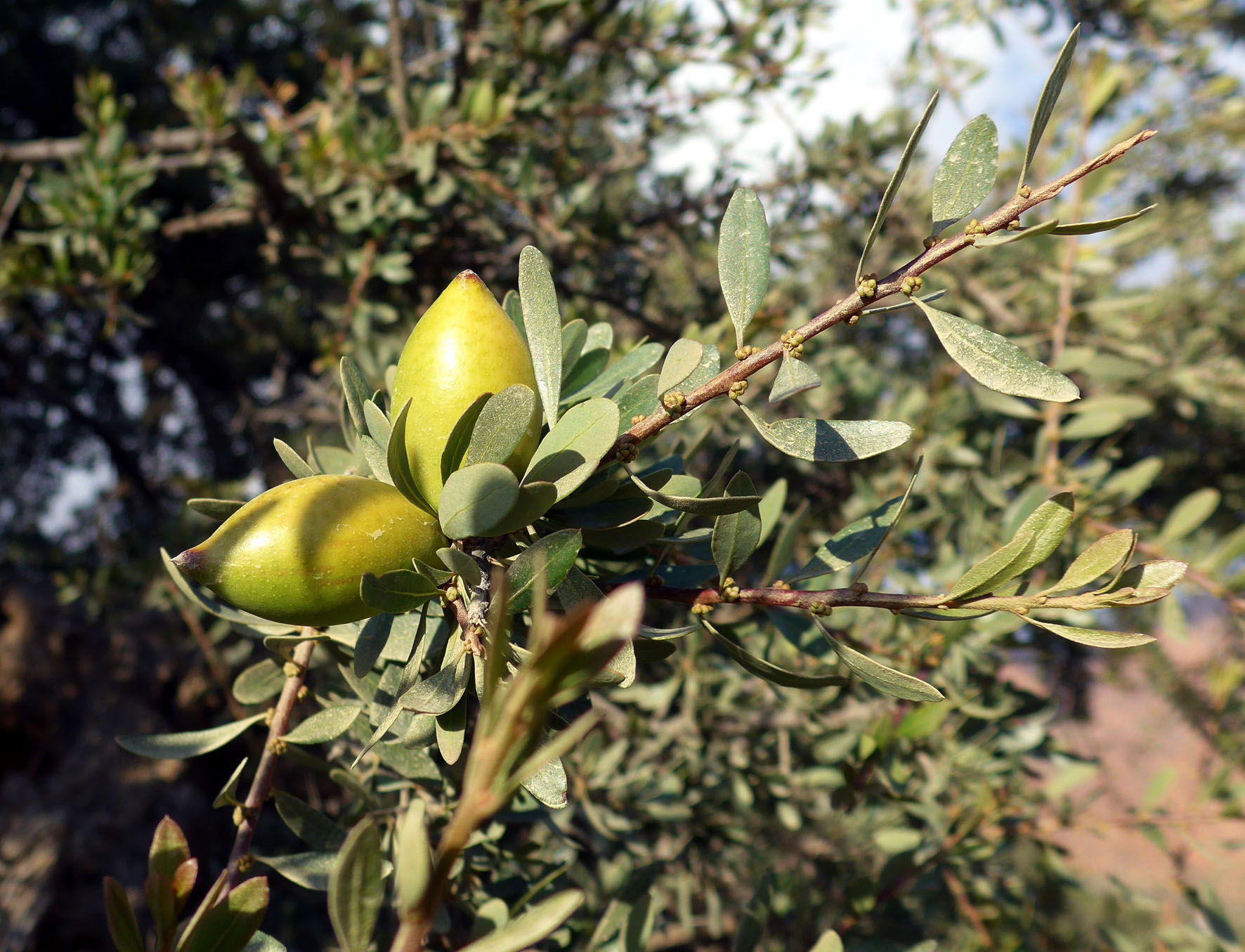 Arganöl ist nicht nur eine Delikatesse, es soll auch Haut und Haare schön machen. Das wusste ich bereits, aber nicht, dass die Öle unterschiedlich hergestellt werden: Das kosmetische Öl ist hell wie Rapsöl und wird aus den unbehandelten Samen gepresst. Für das Öl, das für den Verzehr gedacht ist, werden sie hingegen zuerst geröstet, was das nussige Aroma stärker herauskitzelt.Wenn man eine Argannuss übrigens frisch geknackt probiert, schmeckt sie ziemlich bitter.