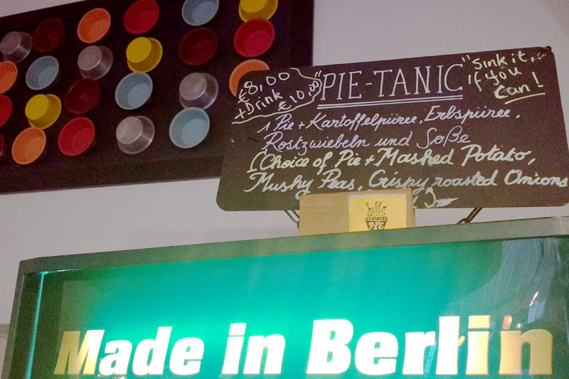 Wir haben unsere Sucht Erkenntnisse allerdings nicht dazu genutzt, einen Imbiss in Berlin zu eröffnen, um „dem deutschen Volk das Geschenk des allmächtigen Pies zu bescheren“. Das hat uns der gebürtige Ire voraus. Glücklicherweise! Denn die gefüllten Pasteten, die uns bei unserem Besuch in seinem kleinen, sehr gemütlich und künstlerisch eingerichteten Imbiss aus einer jener klassischen Warmhaltevitrinen anlachten, waren sensationell gut. Keine „mystery meat“-Füllung, wie Peter, der sympathische Mann hinterm Tresen, schmunzelnd die typischen Fast Food Pies beschrieb. Im Gegenteil: ehrliche Zutaten, die überwiegend aus der Region stammen. Kreative Rezepturen, die je nach Saison und sowieso regelmäßig wechseln. Keine Zusatzstoffe.