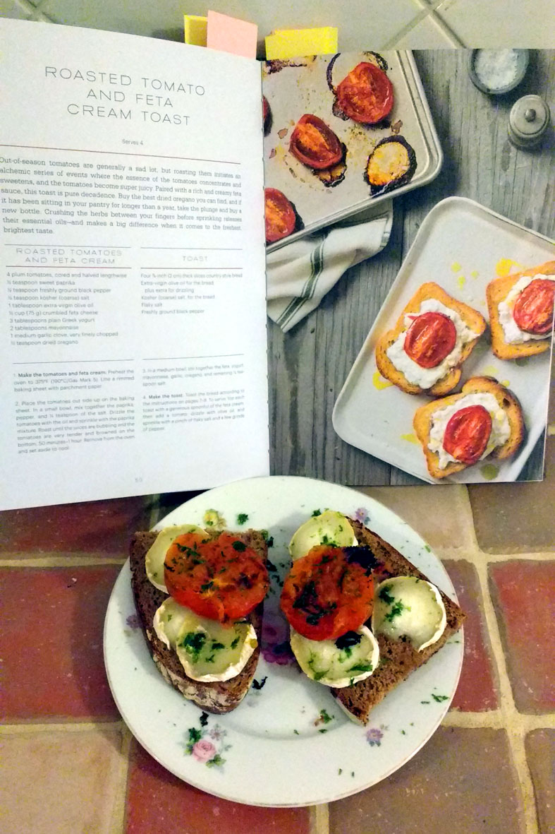 Ich war offensichtlich einem weiteren Irrtum aufgesessen: Das „The Cookbook“ im Untertitel des Buches ist absolut ernst gemeint. Es geht hier nicht um eine schnöde Ideensammlung, was man mal schnell auf seine Scheibe Brot werfen kann, wenn man eine Alternative zu Wurst und Käse sucht. Sondern um ausgefeilte, fein abgeschmeckte kleine Mahlzeiten, die eben immer auf einer gerösteten Brotschreibe serviert werden.