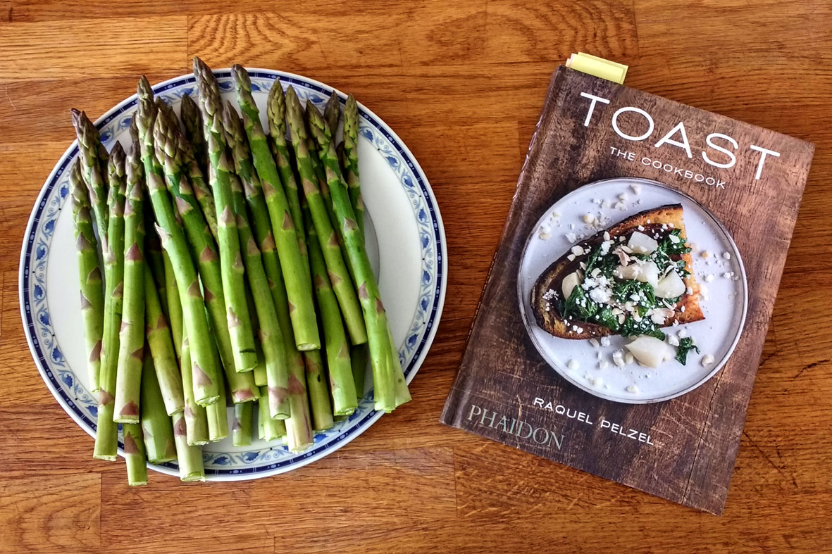 Das Kochbuch "Toast" samt grünem Spargel für eines der Rezepte