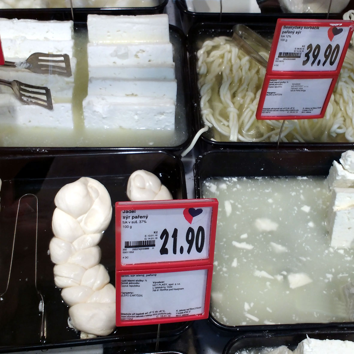 Der vermeintlich bessere und auch teurere Käse von der Frischetheke, den wir ebenfalls probierten, war übrigens so fest, dass wir ihn kaum kauen konnten, und dazu extrem salzig. Irritiert fragte ich meine tschechische Freundin, ob wir den Käse noch irgendwie weiterverarbeiten müssten. „Nein“, meinte sie, „Der gehört so.“