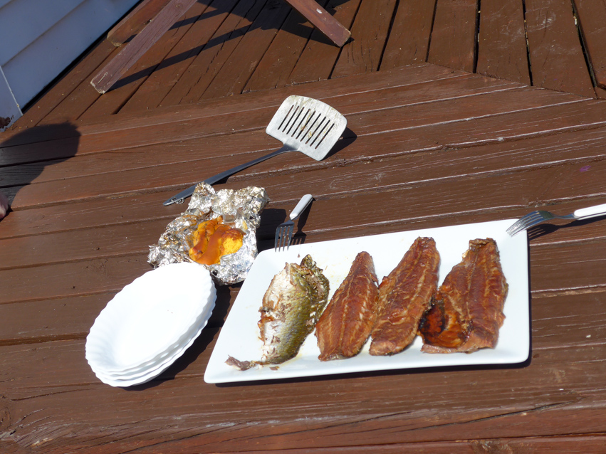 Als ich bedauere, dass wir das zuhause, in Deutschland, nicht wiederholen können, erzählt uns Conor von einer Freundin, die sich selbst eine simple Räucherbox aus einer Metalldose gebastelt hat, die sie auf dem Balkon benutzt. „Es kommt ja praktisch kein Rauch heraus, das geht sogar in der Stadt“, meint Conor. Und schon schmieden wir Pläne für Berlin und überlegen, woraus wir uns wohl unsere eigene bauen können. Fehlt nur noch der selbst gefangene Fisch!